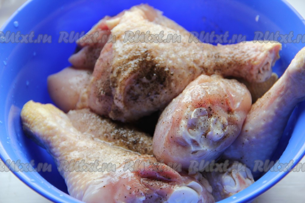 Куриные ножки посолить и поперчить.