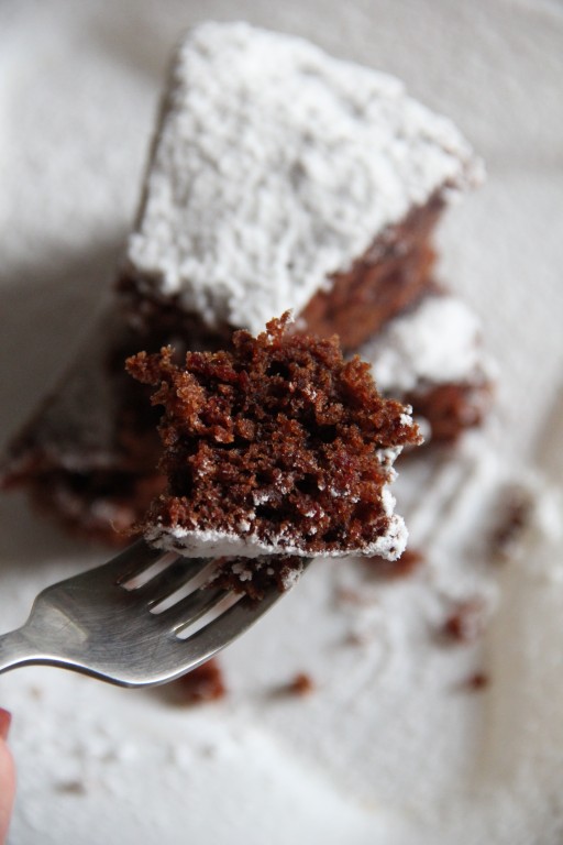 Непосредственно перед выпеканием к тесту добавить разрыхлитель, перемешать. Форму для выпечки (у меня форма диаметром 20 сантиметров) смазать маслом, вылить тесто и выпекать свекольно-шоколадный пирог в разогретой духовке 35-40 минут при температуре 180 градусов. Не забудьте проверить готовность, проколов тесто сухой лучинкой (если и после прокалывания пирога лучинка останется сухой, значит сразу доставайте выпечку из духовки). Дать пирогу немного остыть, затем, вынув из формы, полностью остудить его на решётке. Украсить нежнейший свекольно-шоколадный пирог, приготовленный по этому несложному рецепту, по своему вкусу. Я просто посыпала сахарной пудрой, можно украсить, например, шоколадной глазурью.