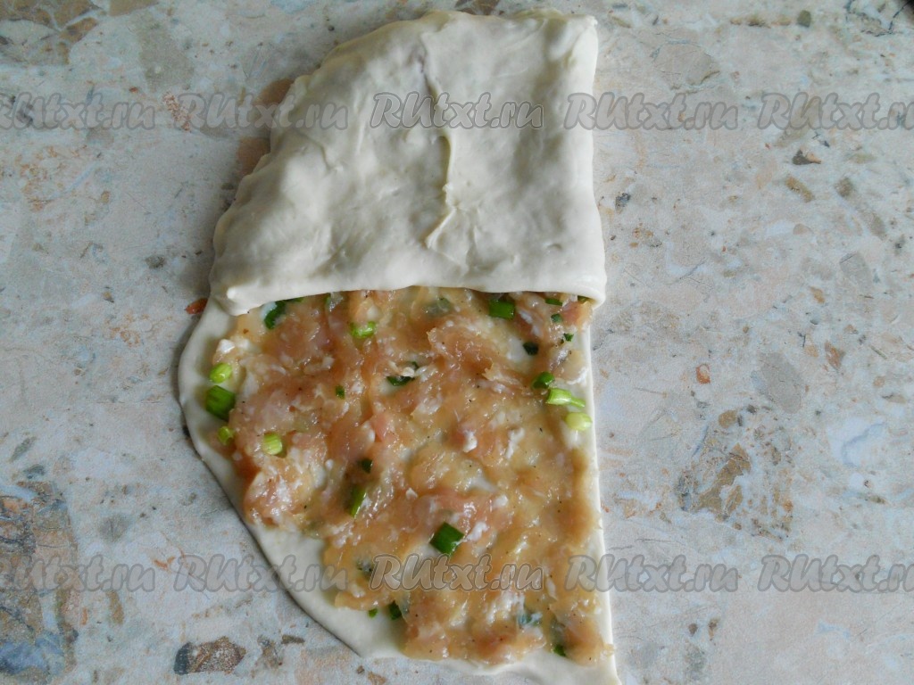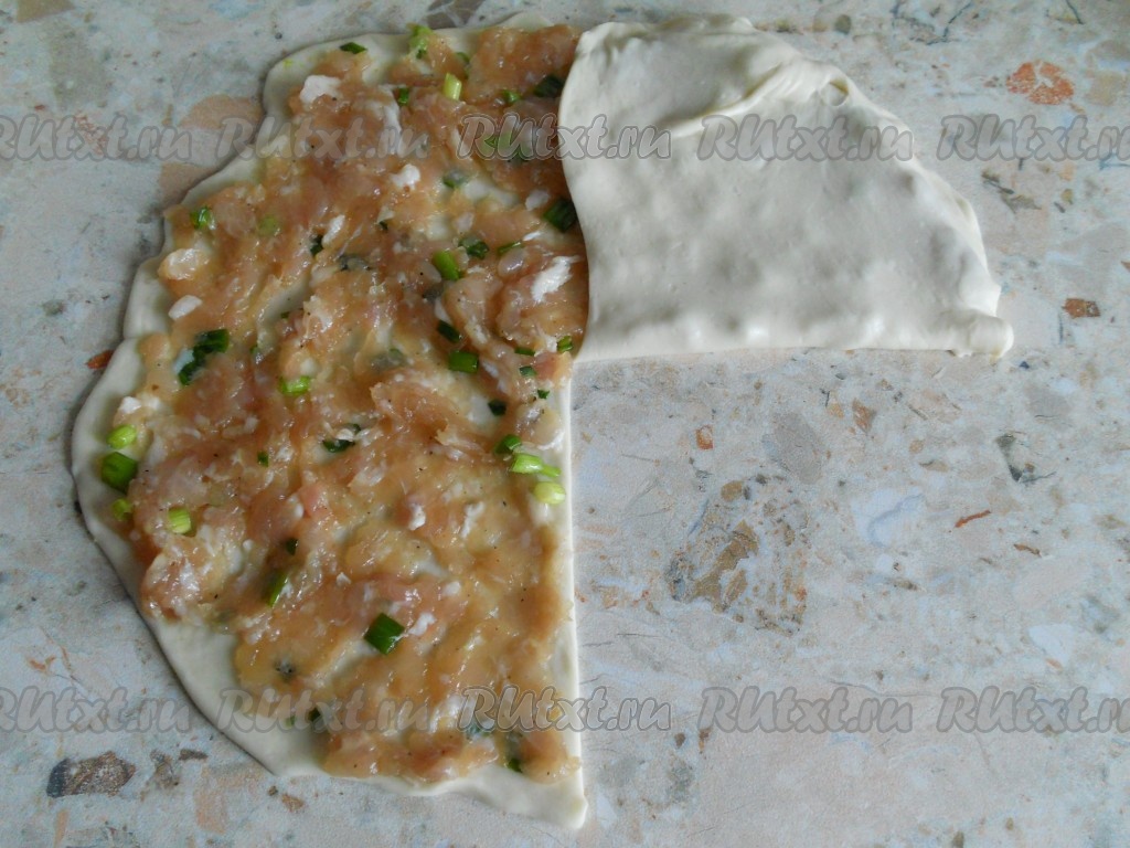 От края до центра сделать надрез и накрыть тестом часть начинки.