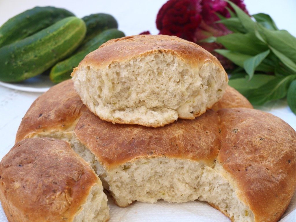 Предлагаю вам вкусный и ароматный летний хлебушек с огурцом и укропом. В этом огуречном хлебе очень мягкий мякиш с пикантным вкусом, а корочка - румяная и хрустящая. Обязательно попробуйте такой хлеб!