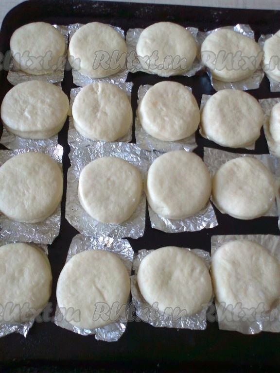 и выкладываем на кусочки фольги или бумаги для выпечки, чтобы потом было удобно брать. Оставляем кружочки подойти на 30 минут, накрыв их полотенцем.