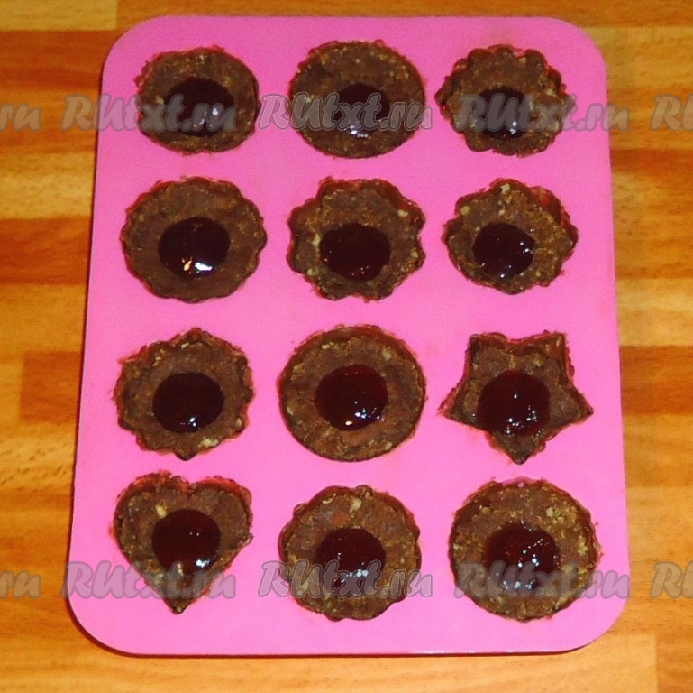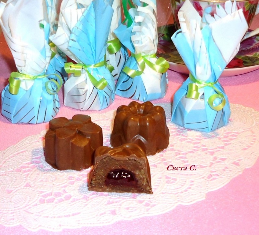 Готовые шоколадные конфеты из печенья с клубничным джемом аккуратно извлечь из формочек.