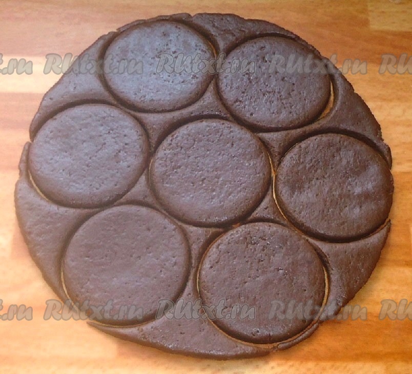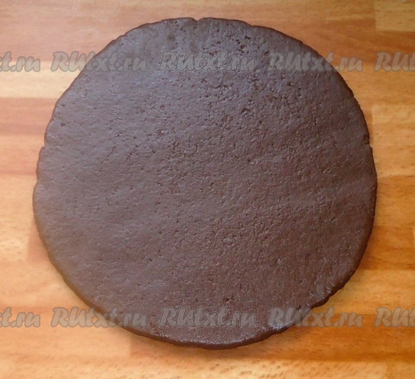 Тёмное тесто раскатать в пласт толщиной 0,5 см.