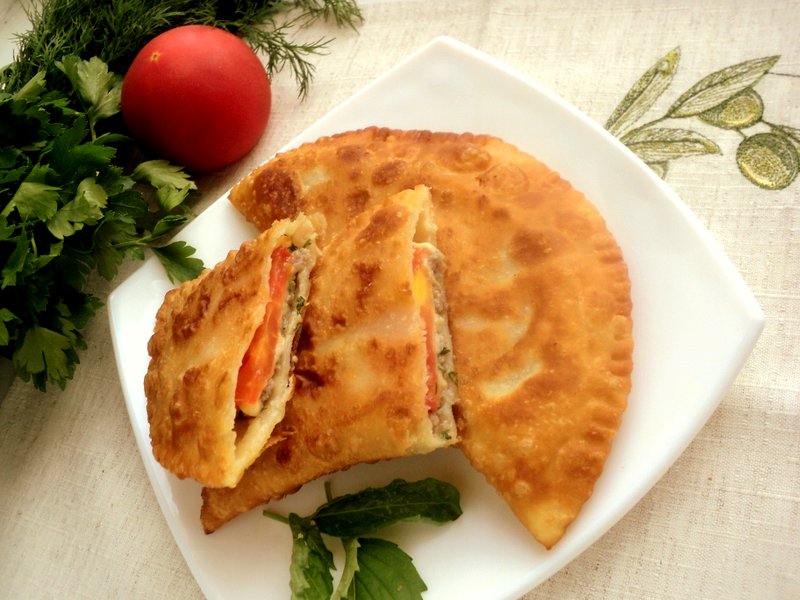 Чебуреки с такой необычной начинкой получаются очень вкусными!