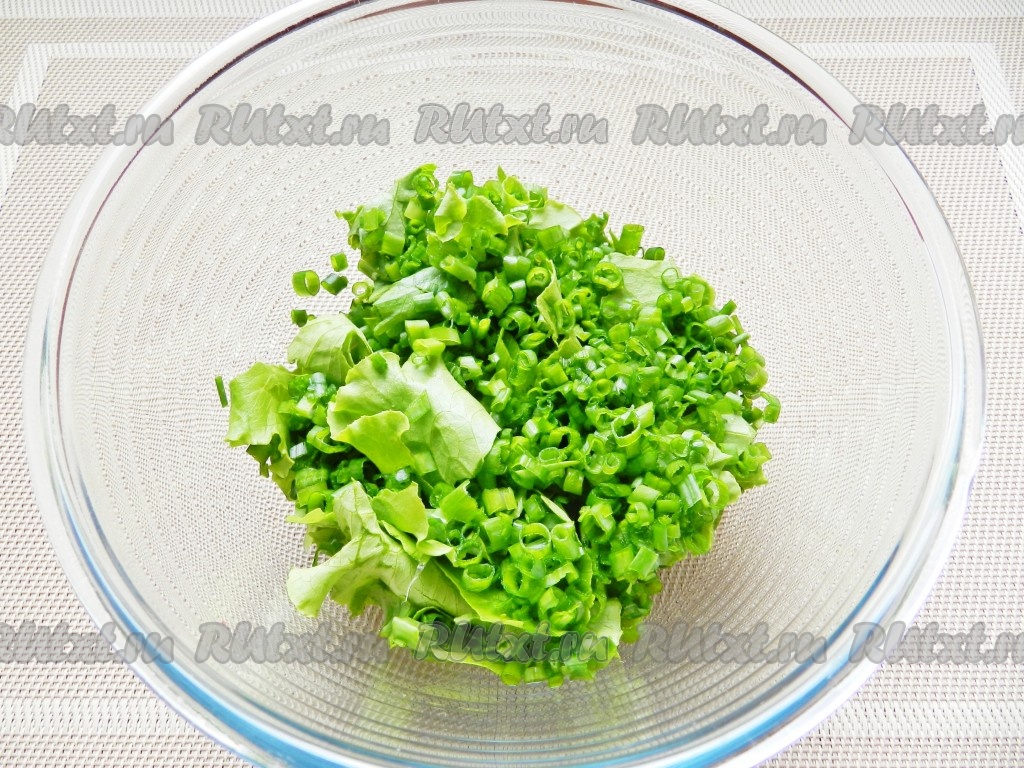 листья салата, зеленый лук, укроп;