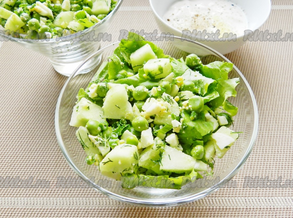 Салат с зеленым горошком и свежими огурцами