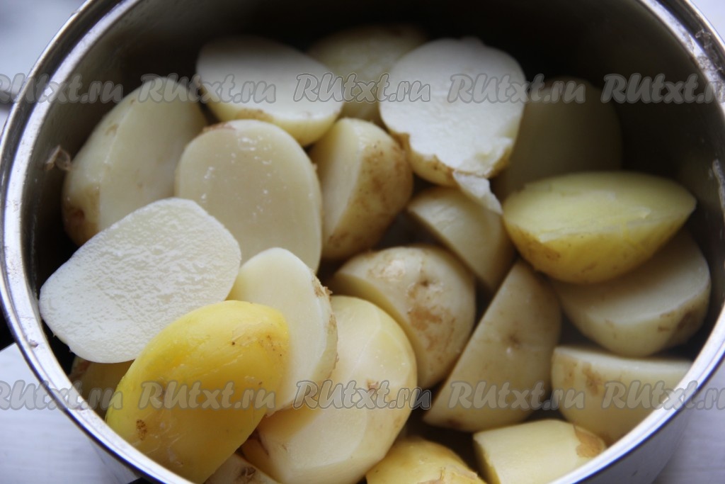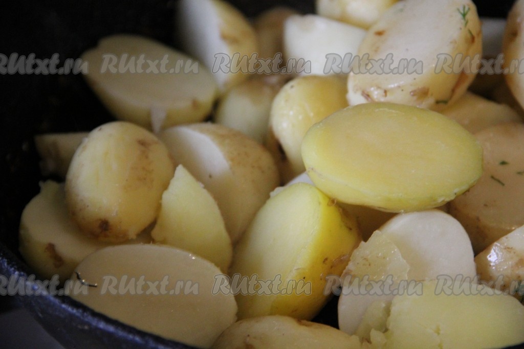 Молодой картофель очистить и отварить до полуготовности в соленой воде.
