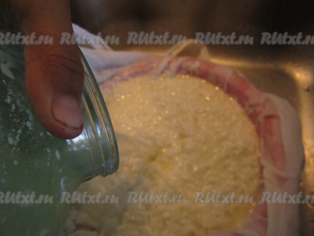 Выливаем в марлю подготовленную простоквашу.