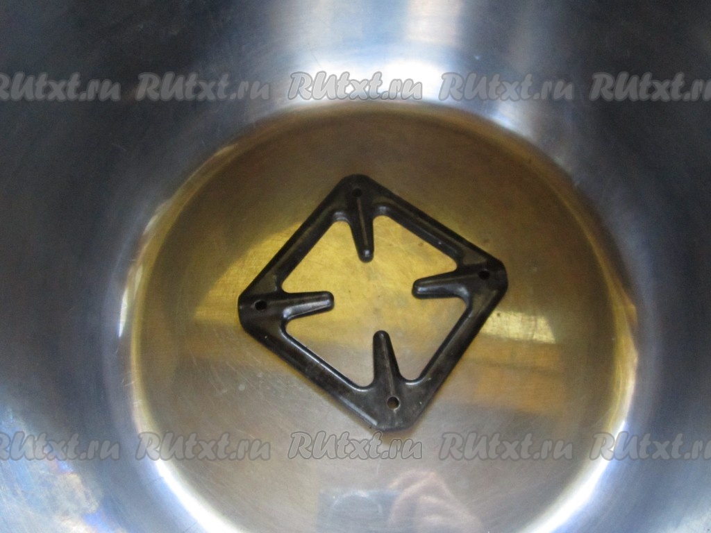 Когда простокваша готова, на дно большой кастрюли кладём подставку, какая у Вас есть. Существуют специальные, для стерилизации заготовок, но можно просто положить на дно несколько жестяных крышек, вилок, ложек и т. п. Это нужно, чтобы банка не треснула при нагревании. Я, например, воспользовалась подставкой на конфорку от газовой плиты.