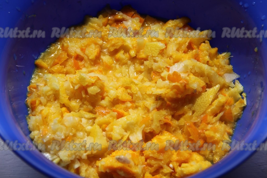 Апельсины и лимоны измельчить в блендере вместе с кожурой.
