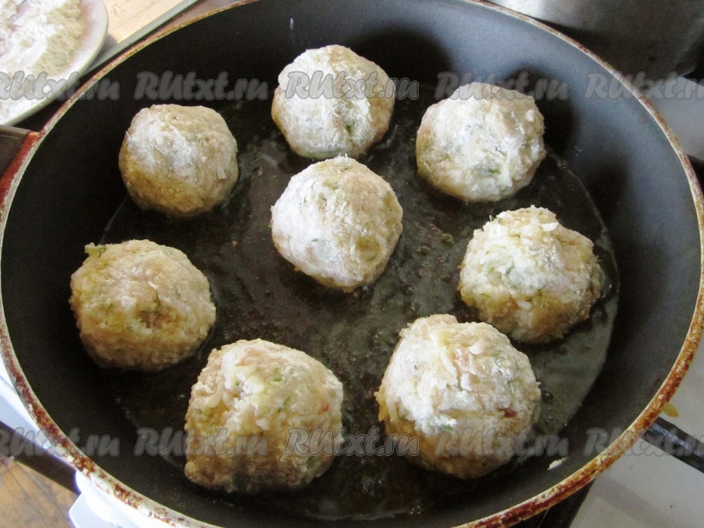 Из получившегося рыбного фарша с рисом сформировать котлетки (у меня получилось из этого количества 12 котлет среднего размера), обвалять их со всех сторон в муке. В сковороде разогреть масло и обжарить котлеты на среднем до румяности со всех сторон.