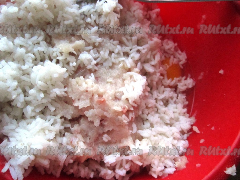 Сюда же выложить остывший варёный рис.