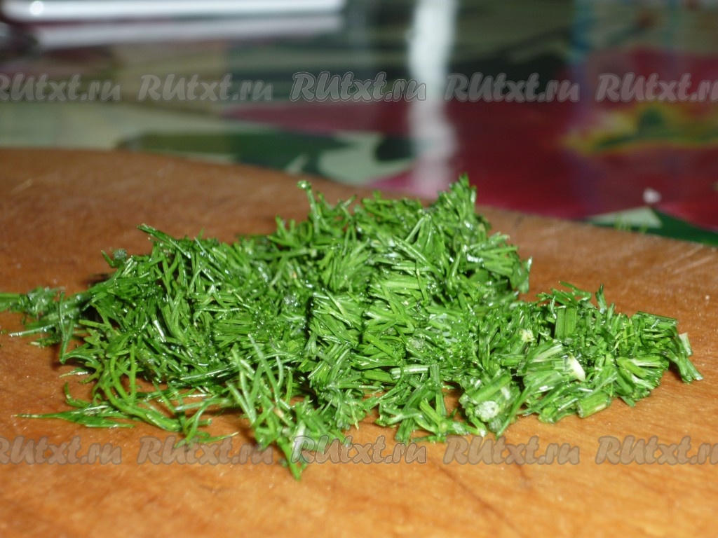 Помидоры помыть и сделать на кожице неглубокий крестообразный надрез. Окунуть помидоры в кипяток и снять кожицу. Затем помидоры пропустить через мясорубку или натереть на тёрке и переложить в сковороду. Укроп помыть и мелко нарезать.