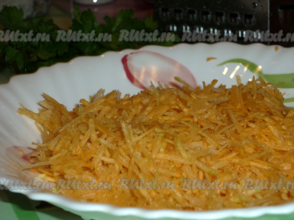 Вымыть лук, чеснок и морковь, очистить. Если кожица у кабачка жестковата, её лучше срезать, крупные косточки тоже лучше удалить. Кабачки натереть на средней тёрке.
