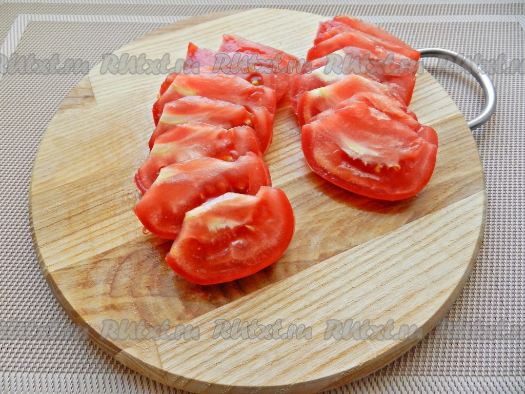 Нарезать помидор на небольшие дольки.
