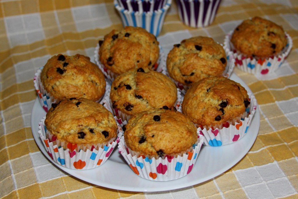 Пышные и вкусные маффины с кусочками шоколада готовы.