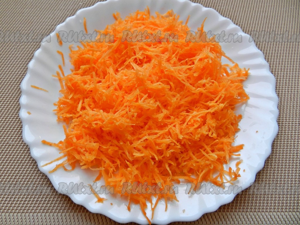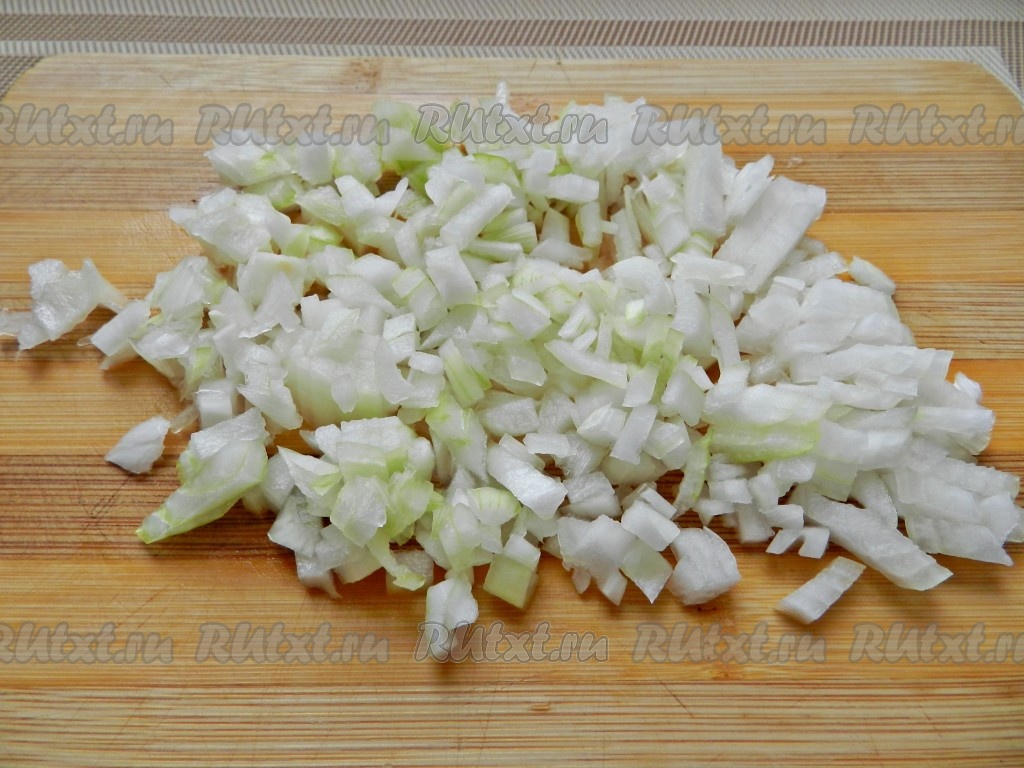Лук очистить, нарезать и обжарить на растительном масле до золотистого цвета.