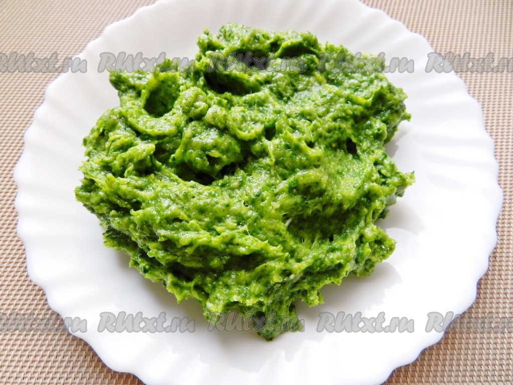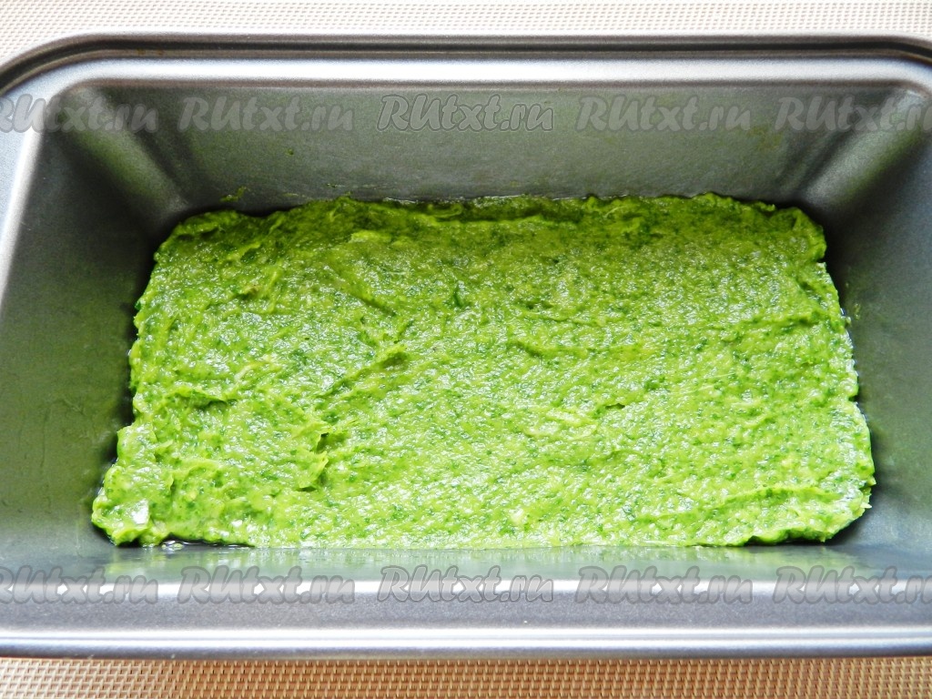 Форму для выпечки смазать растительным маслом. Выложить равномерно слой фарша со шпинатом.