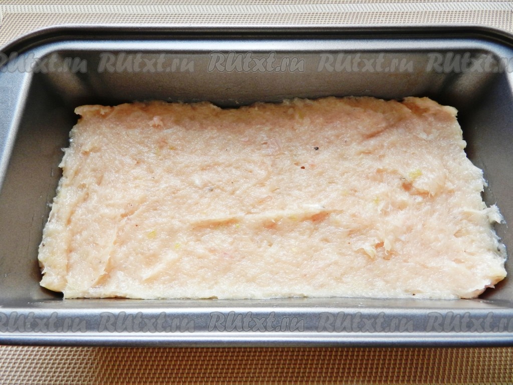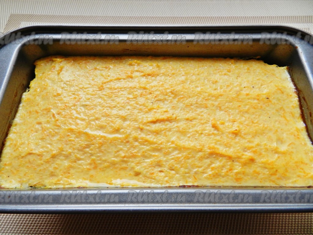 И последним слоем выложить фарш с морковью. Поставить форму в разогретую до 180 градусов духовку и готовить запеканку из куриного филе 30-40 минут.