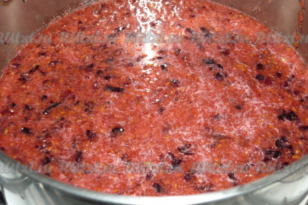 Разлить горячее варенье в стерильные банки и закрутить прокипячёнными крышками. Банки перевернуть, укутать, а после полного остывания убрать на хранение.