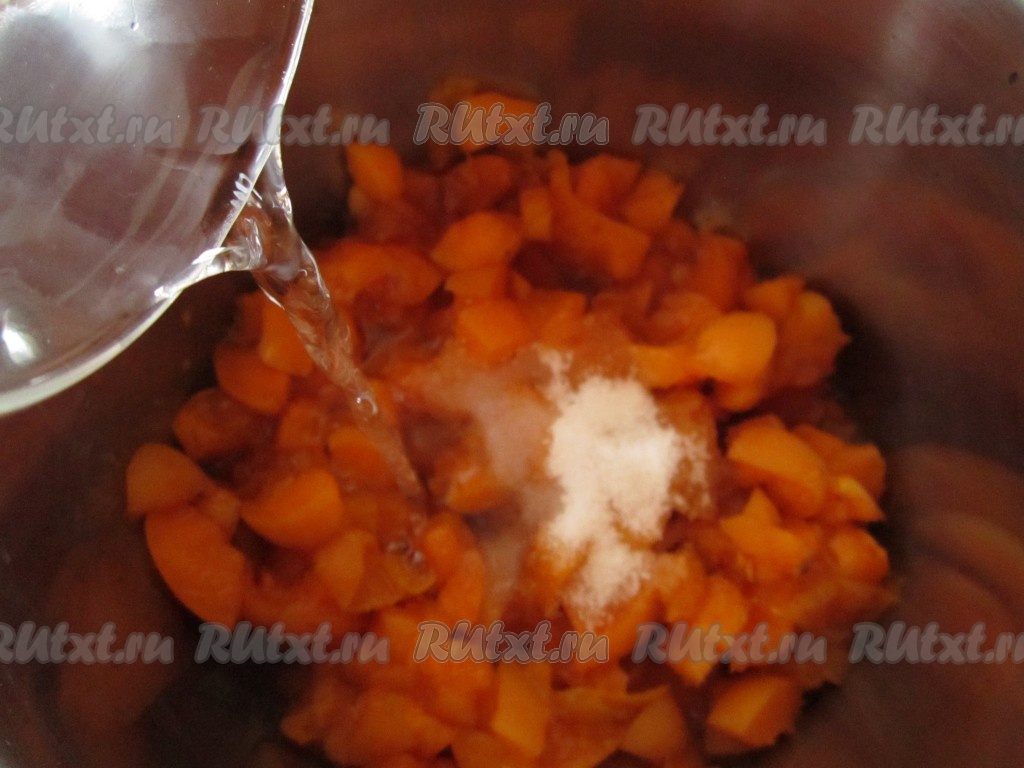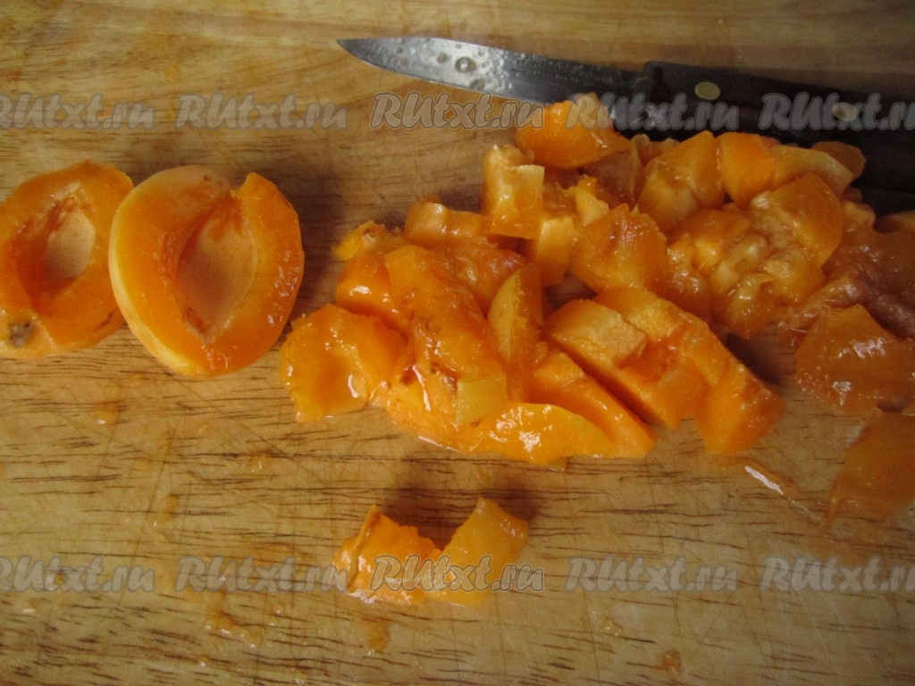 Абрикосы помойте, удалите косточки. Нарежьте небольшими кусочками.