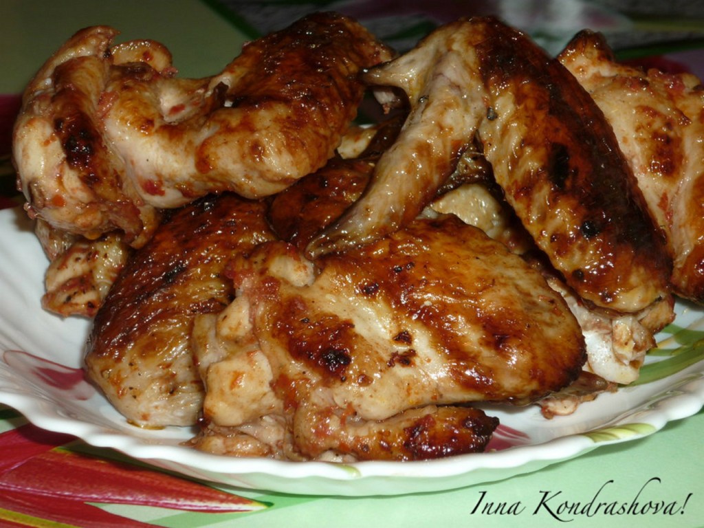 Куриные крылышки, приготовленные в томатном маринаде, станут украшением любого отдыха на природе.