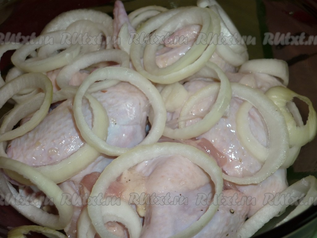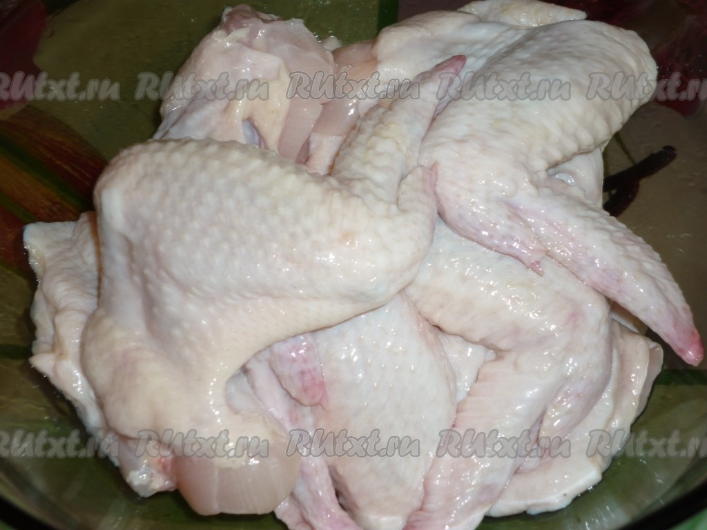 Куриные крылышки помыть и обсушить, выложить в миску или кастрюлю.