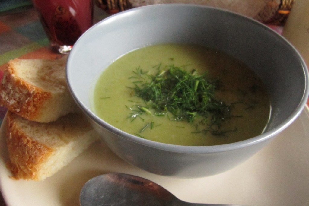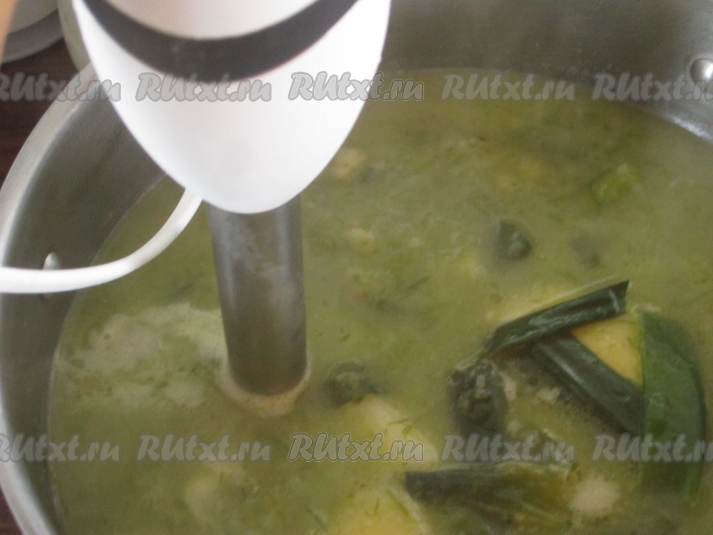 Когда овощи сварятся, измельчите суп блендером.