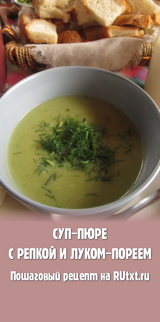 Нежный и ароматный суп-пюре с репкой и луком-пореем готов! При подаче посыпьте его свежей зеленью.