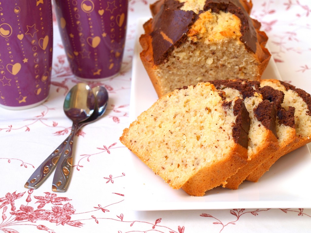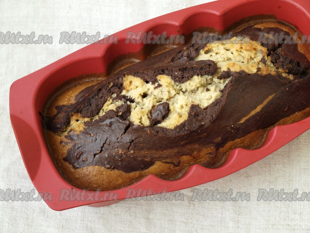 В форму для кекса вылить светлое тесто, а сверху шоколадное. Можно перемешать сверху зубочисткой или оставить шапочкой, как у меня.