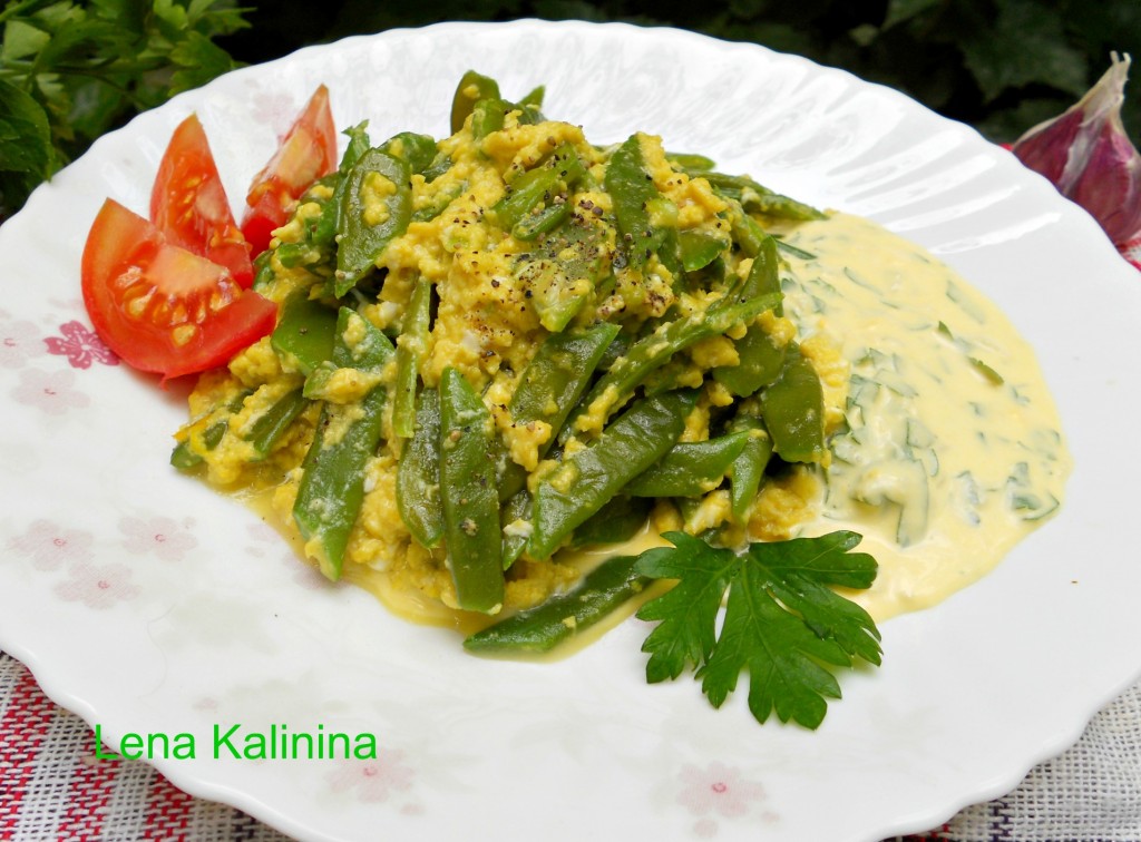 Подать вкуснейшую зеленую фасоль с яйцом в теплом виде, добавив по желанию чесночный соус. Очень вкусно!