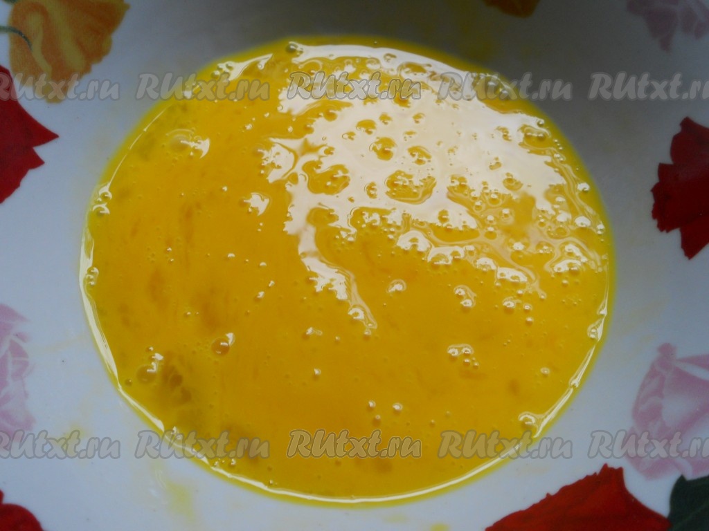 Хорошо разболтать яйца вилкой.