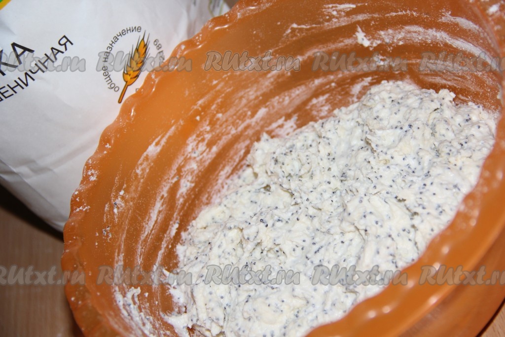 В миску поместить творог, яйцо, ванильный сахар, сахар, соль и мак.
