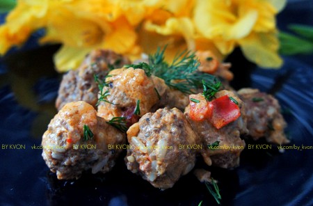 Из получившейся смеси из фарша и риса формируем небольшие шарики - это и будут наши ёжики.