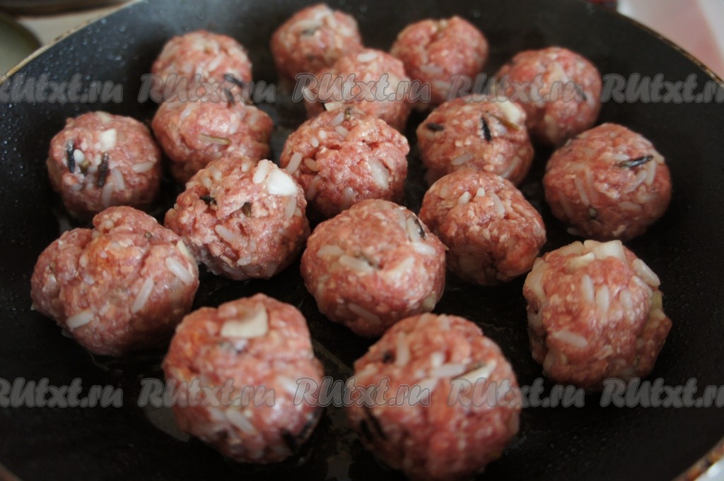 На сковороде разогреваем растительное масло, выкладываем ёжики и обжариваем их на среднем огне до золотистого цвета со всех сторон.