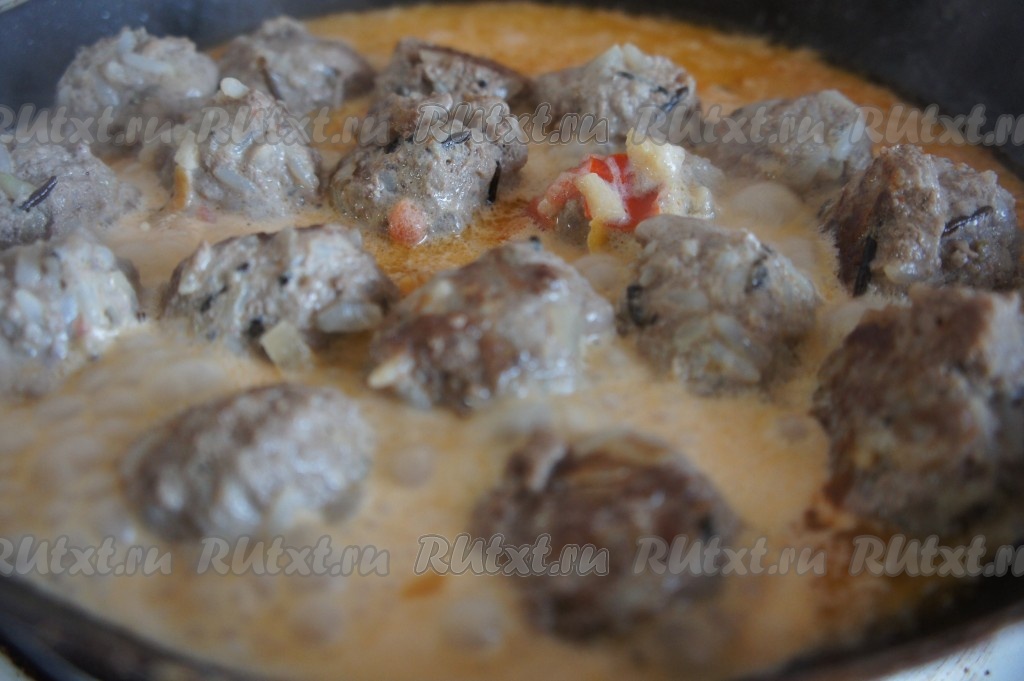 Ёжики, приготовленные из фарша с рисом, тушёные в сметанном соусе на сковороде, - это простое, сытное, аппетитное и вкусное мясное блюдо. Такие тефтели очень нравятся моей семье. Готовится это блюдо достаточно просто, к столу его можно подать практически с любым гарниром (например, с картофелем или макаронами). Отличное повседневное блюдо, попробуйте!