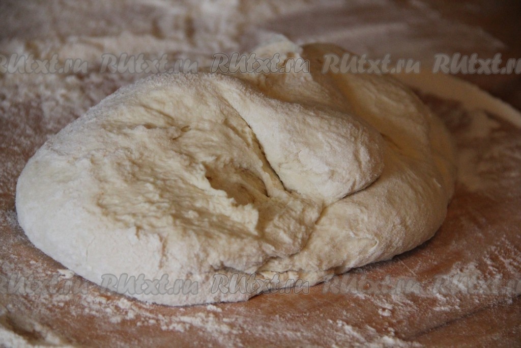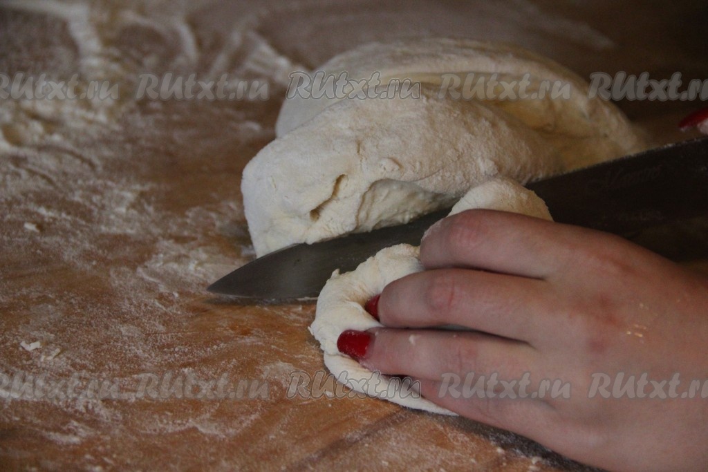 Готовое тесто разделить на 4 части.