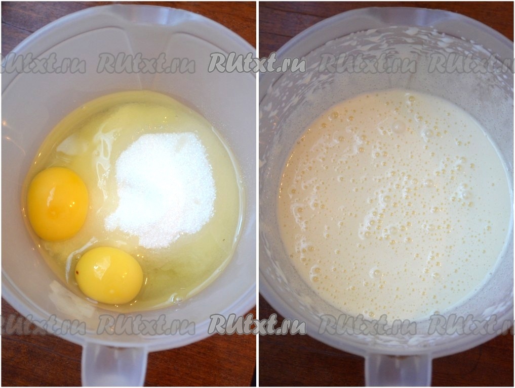 Яйца взбивать с сахаром, ванилином и солью в течение 5-7 минут.