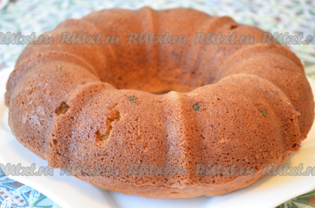Готовый пирог остудить, достать из формы, посыпать сахарной пудрой.