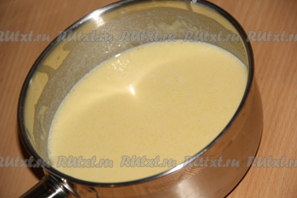Затем влить молоко, добавить сахар и соль. Всё хорошо перемешать и готовить 5-7 минут до загустения.