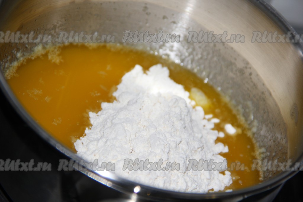 Затем приготовить соус: в небольшом сотейнике растопить масло, добавить муку.