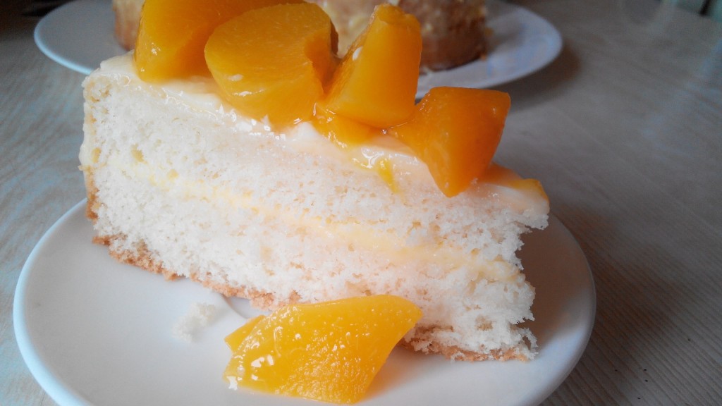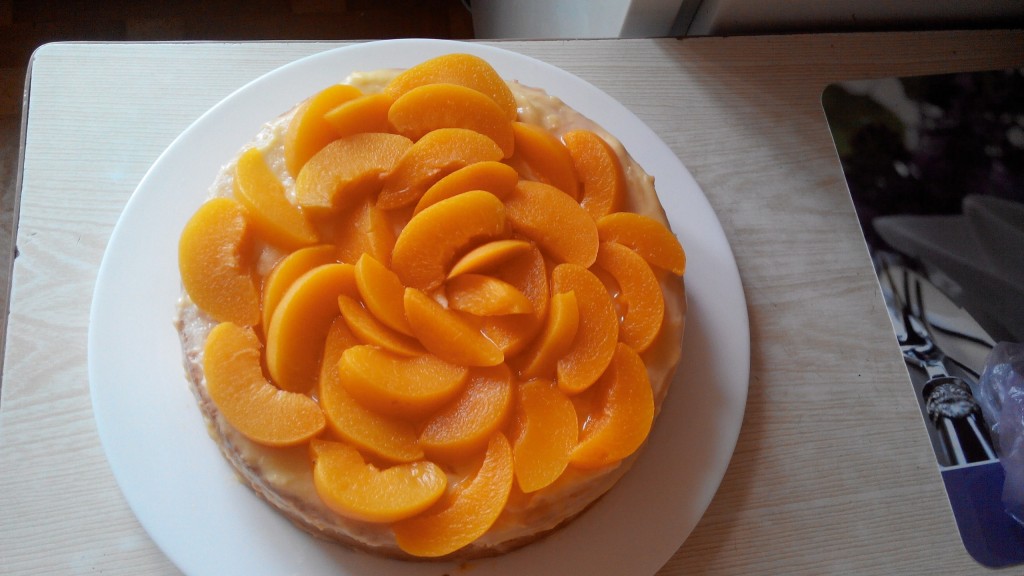 Я надеюсь Вы  не расстроитесь если узнаете, что у меня не было абрикосов, а были консервированные персики и надо было их куда-то деть. Очень понравился рецепт Вашего торта. Для новичка самое то! Всё получилось! И даже лучше ,чем я ожидала. А вкуснооо, ммм.