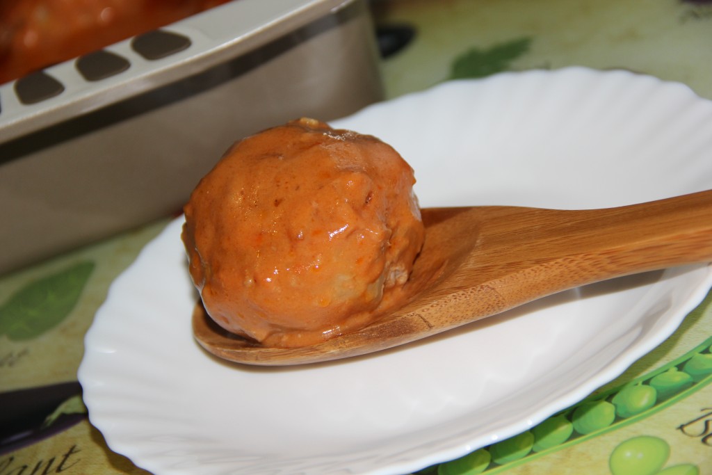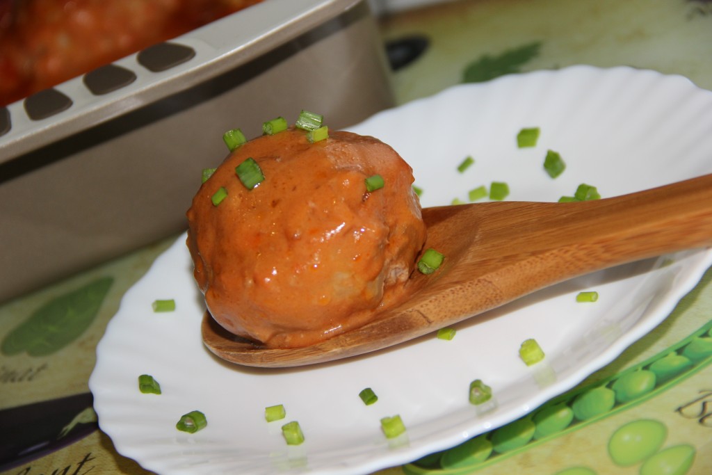 Приготовить соус: в глубокой ёмкости соединить воду, сметану, томатную пасту и муку. Можно слегка посолить. Затем всё хорошо перемешать, я использовала погружной блендер.
