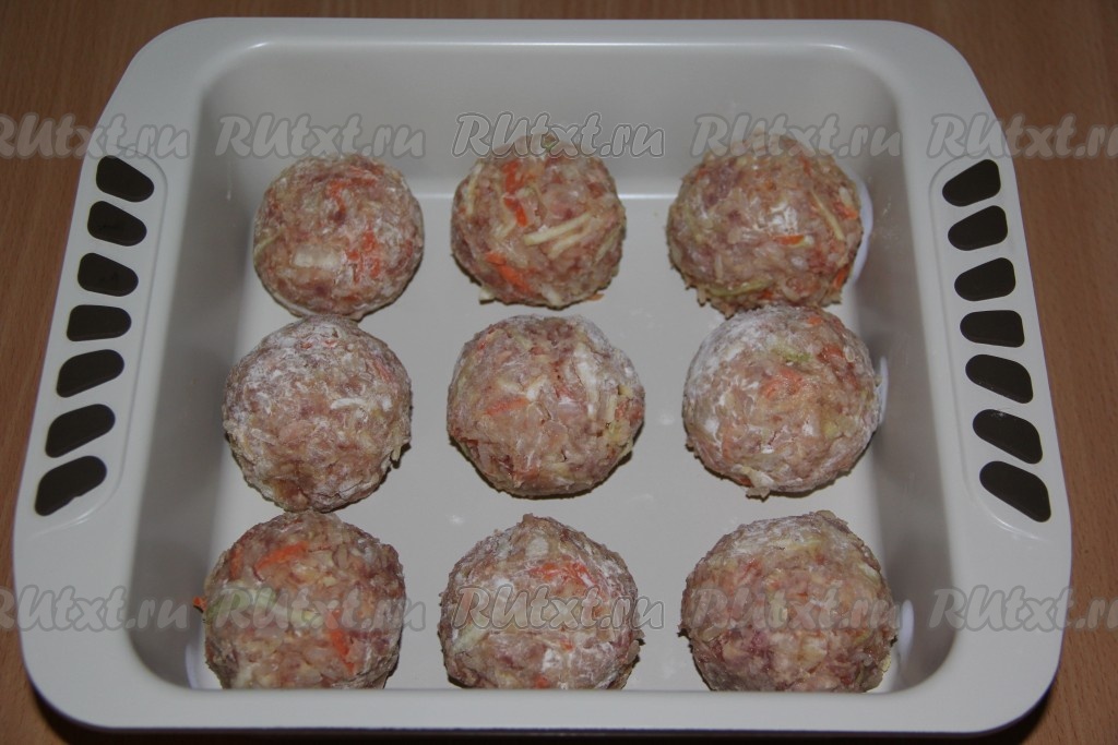 Из полученной массы сформировать шарики, слегка обвалять их в муке и выложить в жаропрочную форму.