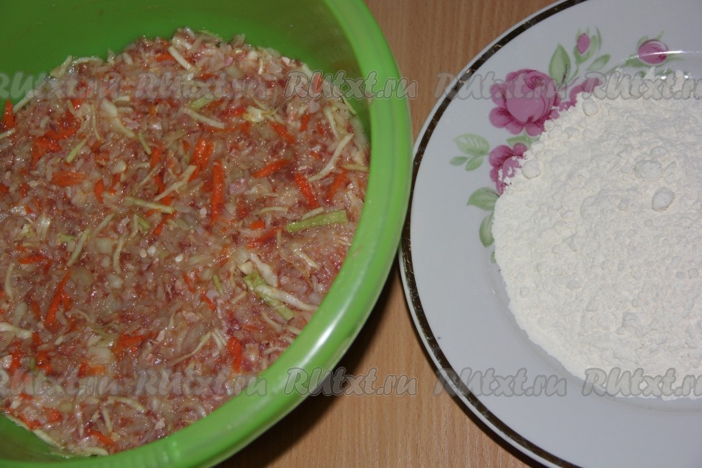 Рис промыть, отварить в подсоленной воде до полуготовности и откинуть на дуршлаг, чтобы стекла вода. Капусту тонко нашинковать, лук почистить и нарезать на мелкий кубик, морковь почистить и натереть на крупной тёрке.