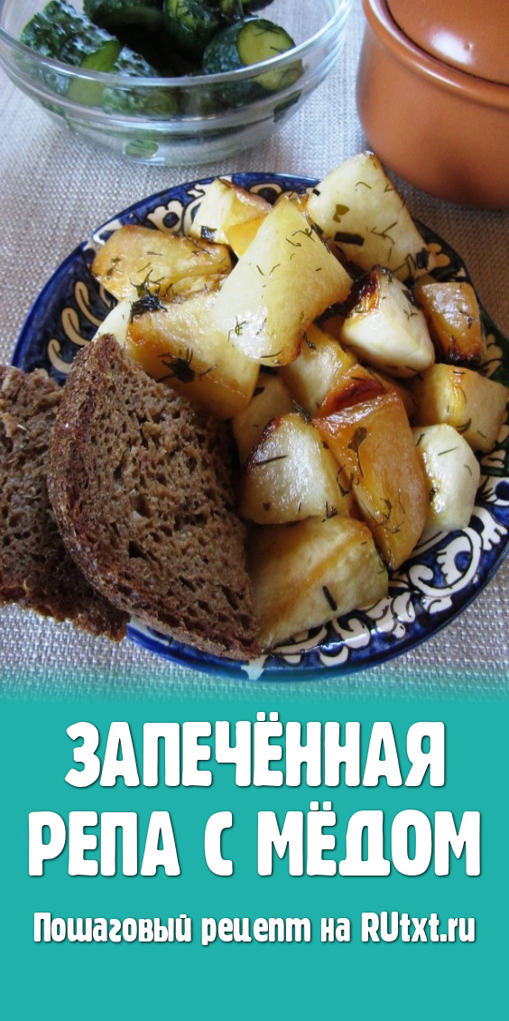 Многие выращивают в огороде репку - растёт она быстро, да и ухаживать за ней просто. И вот, "выросла репка большая-пребольшая", и хозяйки хватаются за голову: что же из неё приготовить?! Давайте вспомним поговорку - "проще пареной репы" - и приготовим пареную репу на новый лад - заправим её сливочным маслом, мёдом и зеленью. Получается необычно, сочно и очень ароматно! Запечённую репу можно подать на гарнир к мясу, особенно хорошо она подойдёт к свинине, а можно использовать, как самостоятельное блюдо.