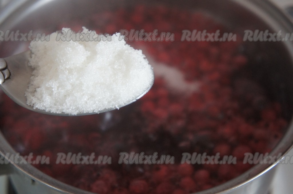 Когда вода закипит, добавляем сахар (количество сахара регулируйте по своему вкусу), перемешиваем, делаем медленный огонь и варим 7-10 минут.