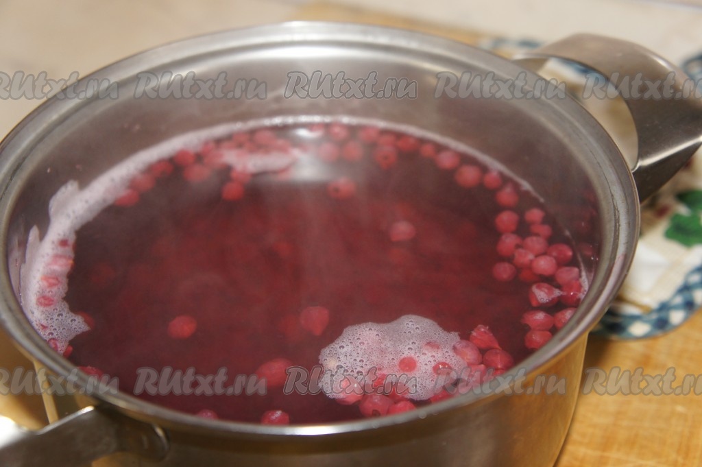 Ягоды красной смородины выкладываем в кастрюлю, заливаем 1 литром воды и ставим на сильный огонь.