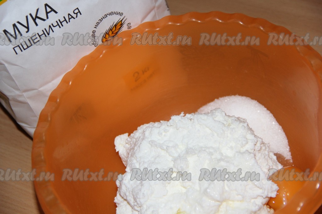 Творог выложить в глубокую миску. К творогу добавить сахар, соль, сырое яйцо и хорошо растереть в однородную массу при помощи вилки. Затем начать по столовой ложке добавлять муку и хорошо перемешивать.