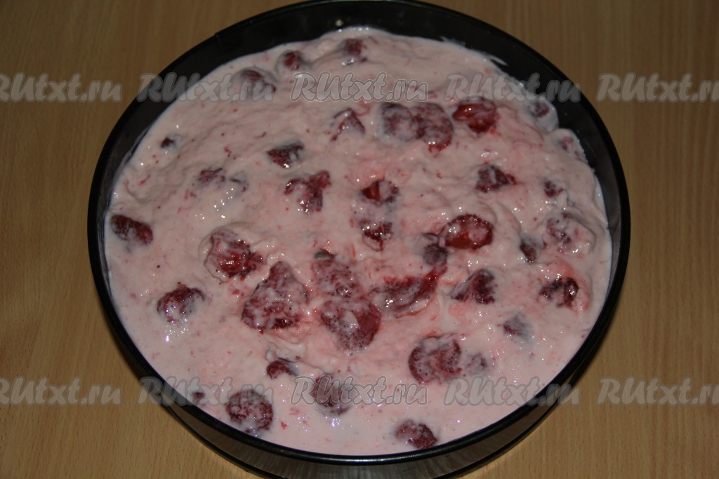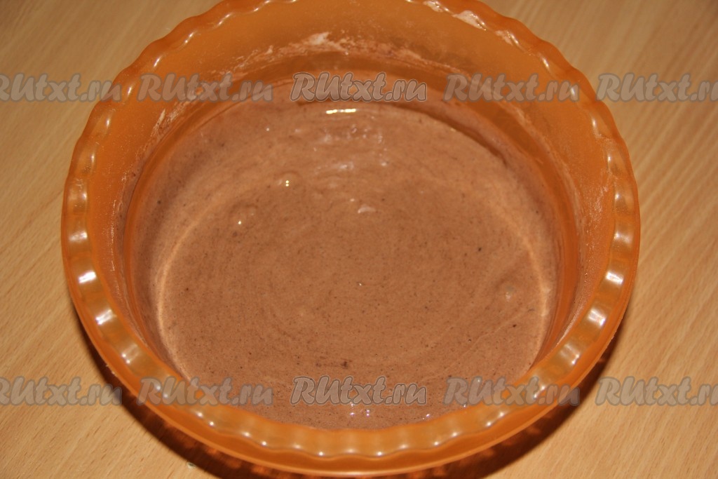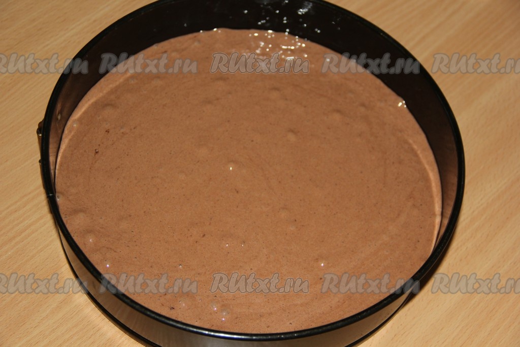 Форму для выпекания (у меня разъёмная 26 см) смазать растительным маслом. Вылить тесто в форму.